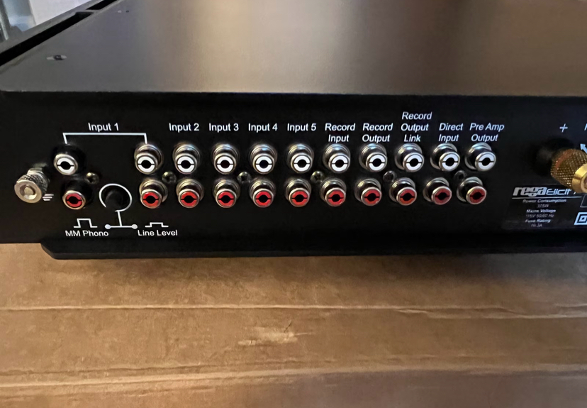 Five line inputs (Input 1 switchable between MM phono and line-level)